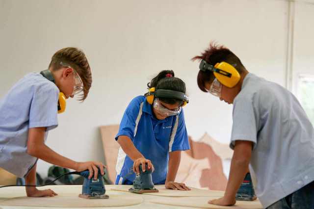 When putting on a stage play it’s all hands on deck with art students helping to create backdrops and costumes, whilst children from Design & Technology courses will help build sets and set up lighting. During the school year each class will present two student-led shows at the general assembly, performances that allow the children to undertake tasks including script writing, controlling sound and lighting, and music production.